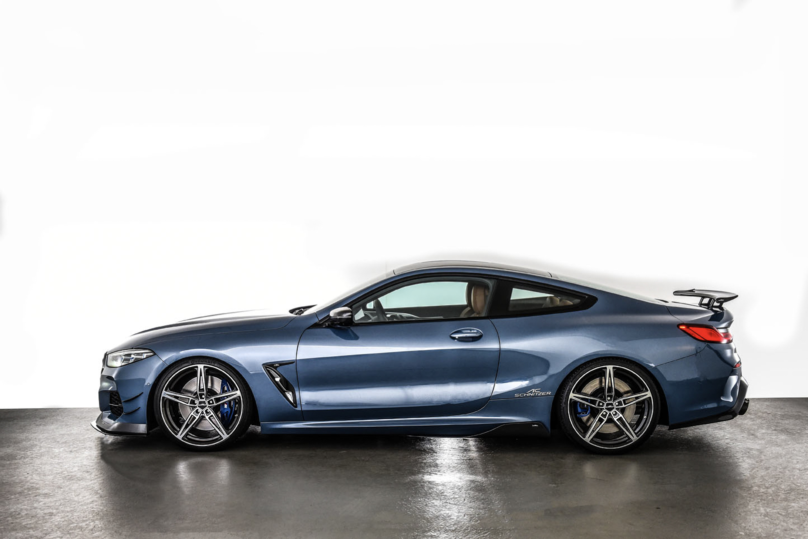 Inside, the BMW 8 Series gets AC Schnitzer aluminum paddle shifters, pedal set, dead pedal and matching key holder.
