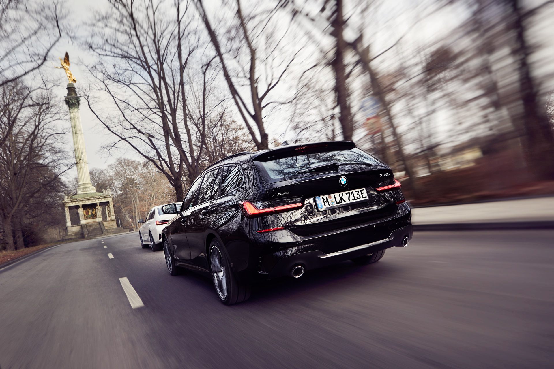 The new BMW 330e plug-in hybrid model photographed in a special combo